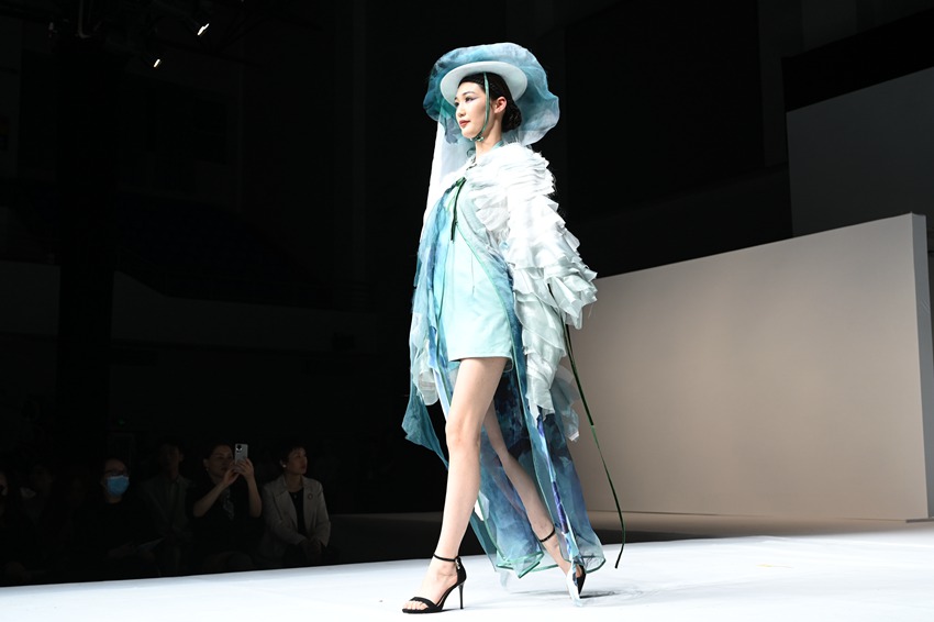 运动装青春时尚,职业装洒脱优雅,国风华服底蕴深厚……4月12日晚,一场创意巧妙的服装设计毕业作品展演在中原工学院举行。
