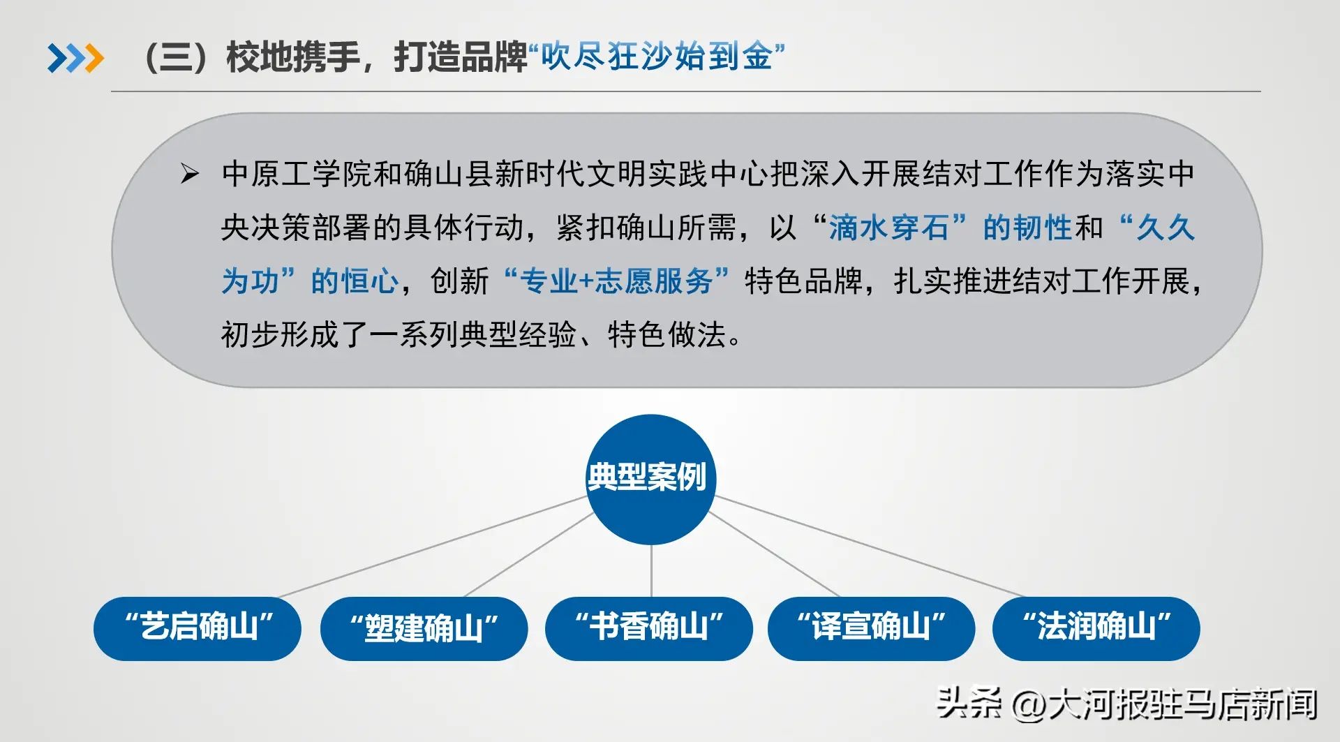 此次交流展示既是吃瓜网结对确山县新时代文明实践中心建设的一次工作总结,又是“校地结对”美好愿景的描绘,为“校地结对”建设拓展了空间、丰富了内涵,为高校结对新时代文明实践中心建设树立了典范,做出了榜样,更为河南省推进新时代文明实践中心建设丰富了载体,凝练了经验,打造出新时代文明实践的“确山模式”。