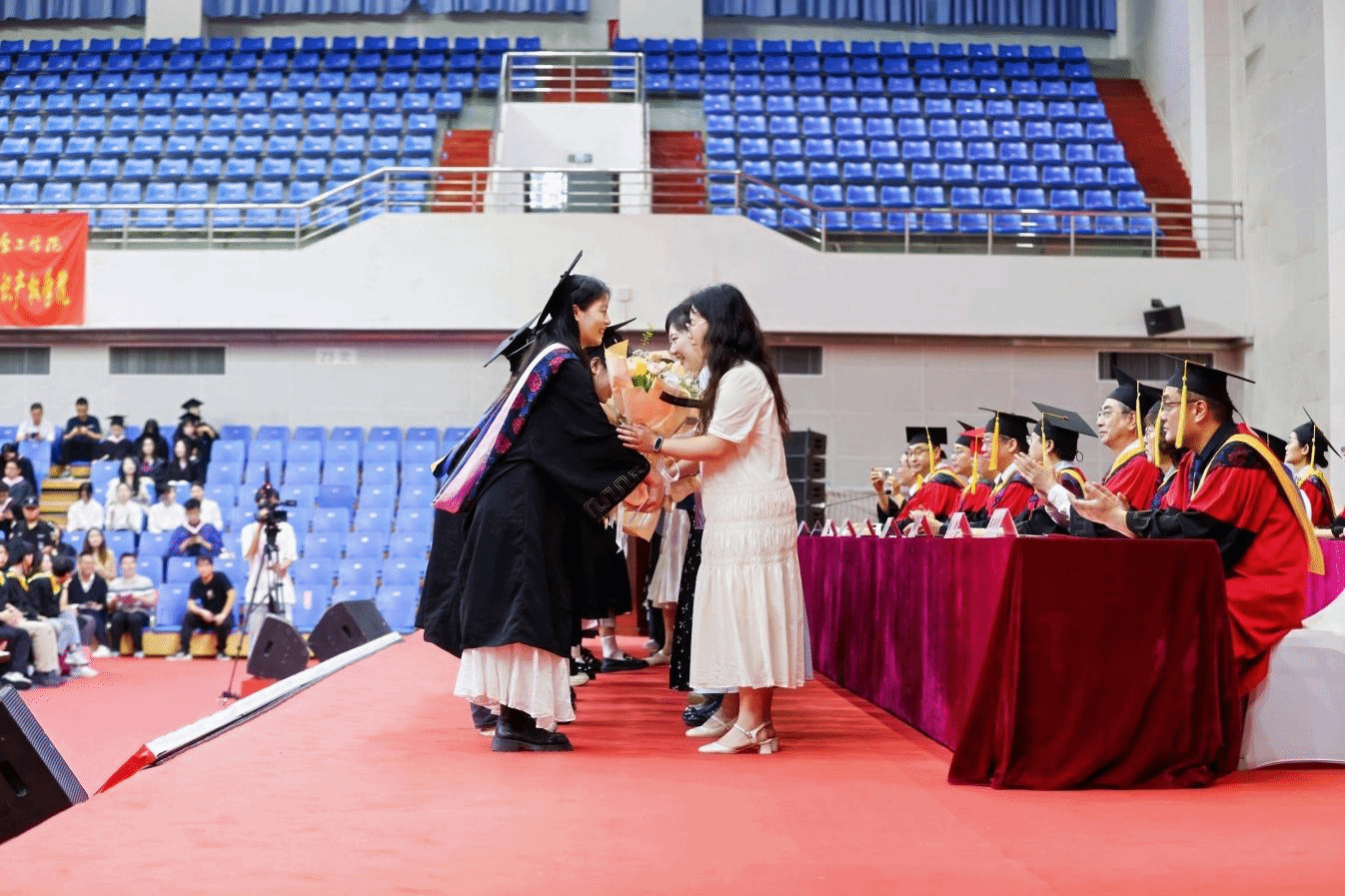 典礼上更呈现了温情一幕:毕业生们手捧鲜花,向守护自己成长成才的教职员工代表和默默付出的家长代表深深鞠躬,表达对师长培育之恩的崇高敬意和对父母养育之情的深切致谢。
