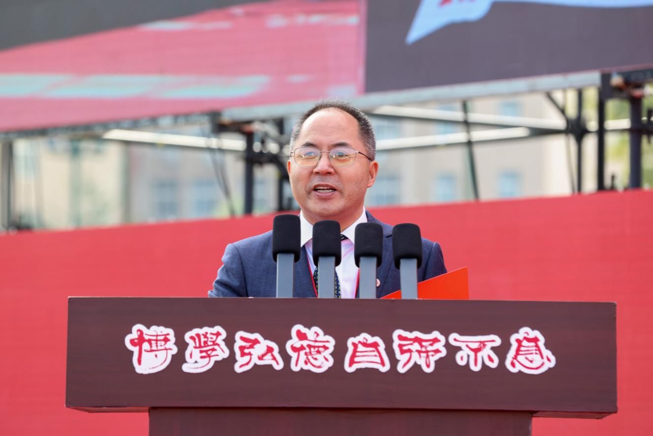学生代表、经济管理学院工商管理2023级王天赐以在校生视角回顾学校发展历程,感恩学校春风化雨般的培育,致敬老师们“仰之弥高,钻之弥坚”的师者风范,感怀“恰同学少年”的同窗情谊,并表示将珍惜韶华、奋发图强,把个人理想融入学校发展,以实际行动为学校在新征程上谱写更加灿烂的篇章贡献青春力量。