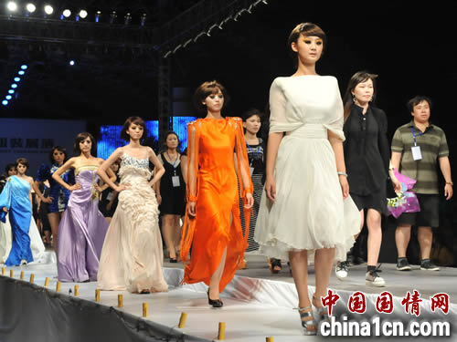 本网讯(李建波、胡洛燕/文 有明/图) 霓虹闪烁,倩影摇曳。6月8日晚,中原工学院2011届服装毕业展演在流光异彩的校园拉开序幕。此次展演,共展示了中原工学院服装设计专业方向58名毕业生的260件优秀作品,涵盖了休闲、创意、礼服等不同风格,包括女装、男装、童装、亲子、内衣等不同类别,给现场万余名观众带来了一场视觉盛宴。