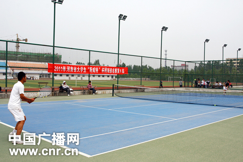 中广网河南分网消息 5月6日—8日,2011年河南大学生“斯威特”杯网球排名赛,第一站的比赛在中原工学院网球场火热上演。来自郑州大学、河南大学、中原工学院、洛阳师范学院等全省多个地市的11所高校,公计120多名选手参加了此次比赛。