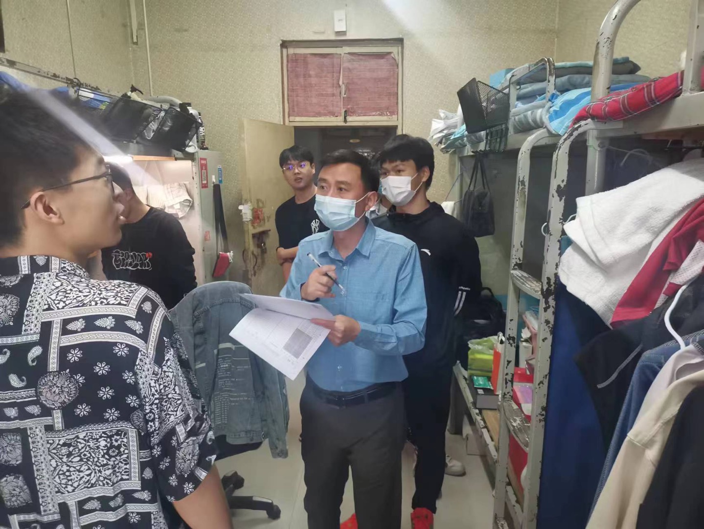 方建印每到一个宿舍,与同学们亲切交谈,了解学生们的学习、生活情况和思想状况,强调当前疫情防控的严峻复杂形势,同时查看了宿舍安全卫生情况,希望同学们自觉遵守学校疫情防控政策,同心协力共克时艰。