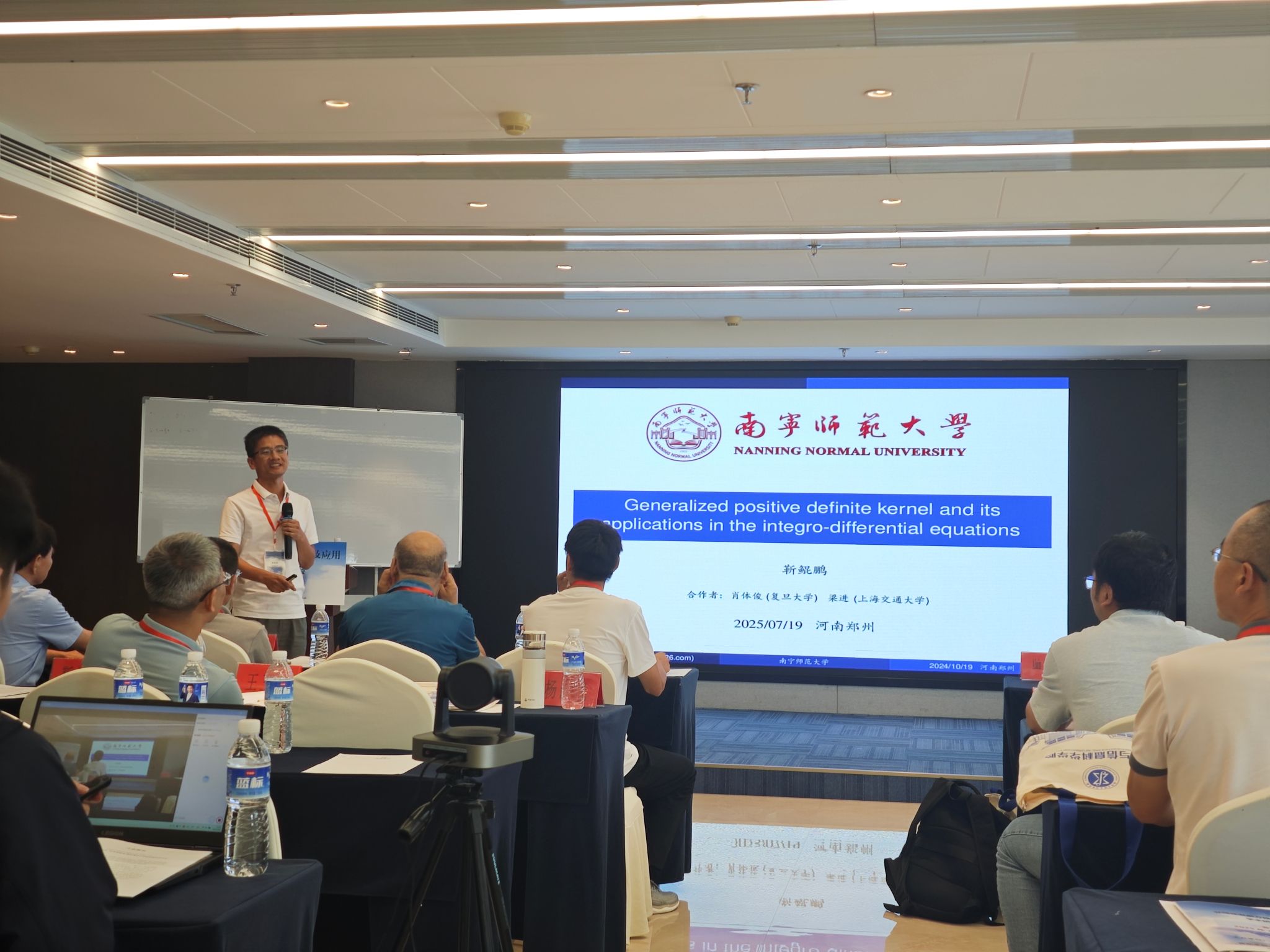 靳鲲鹏作题为《Generalized positive definite kernel and its applications in the integro-differential equations》的报告,主要介绍具有正定核的微积分发展方程的能量衰减问题,借助广义正定核(GPDK)及其性质建立了此类方程衰减率的判别准则,突破了现有正定核理论的局限。