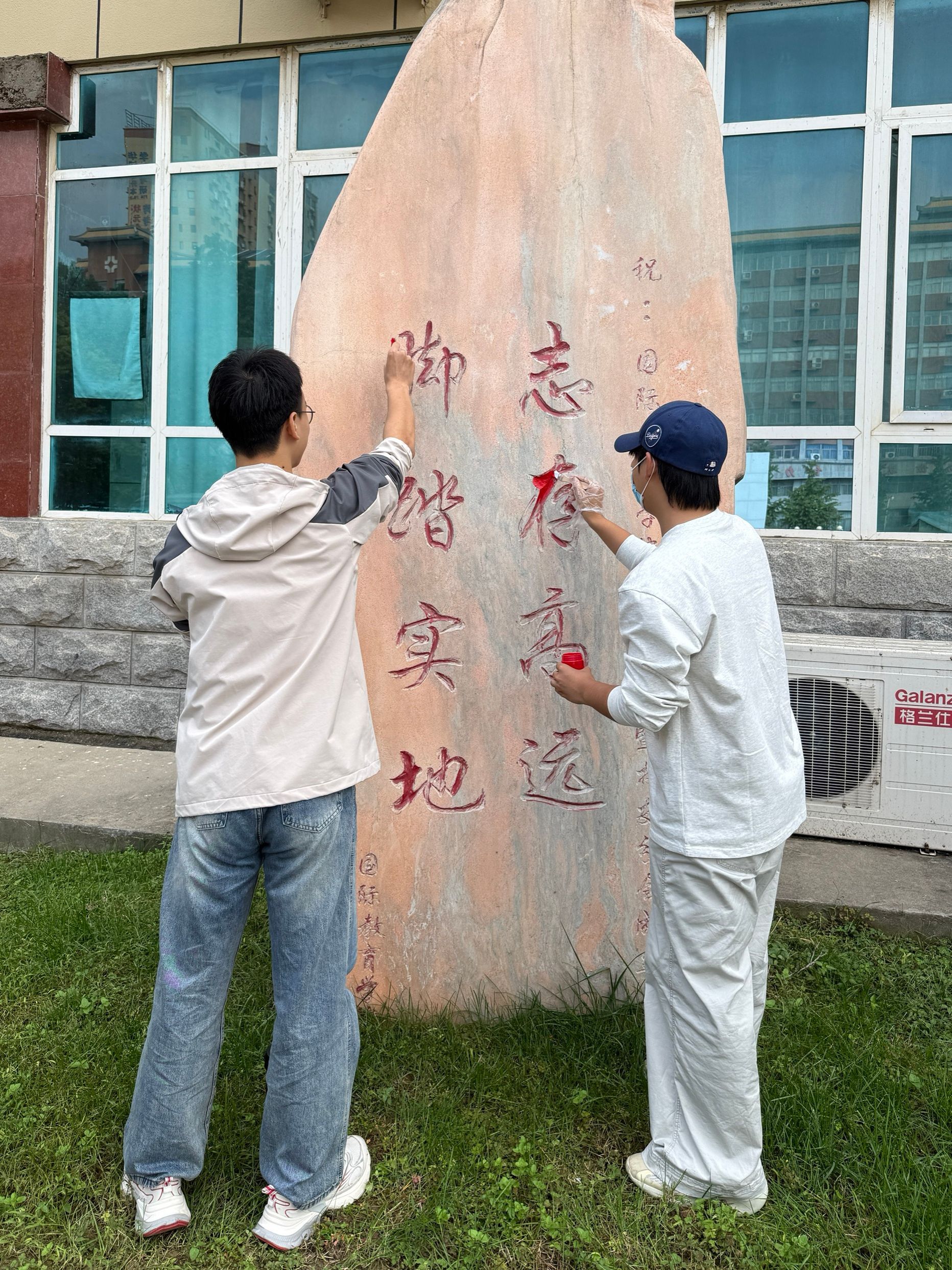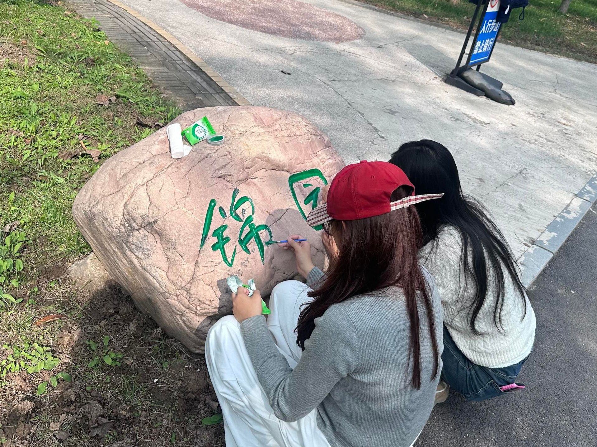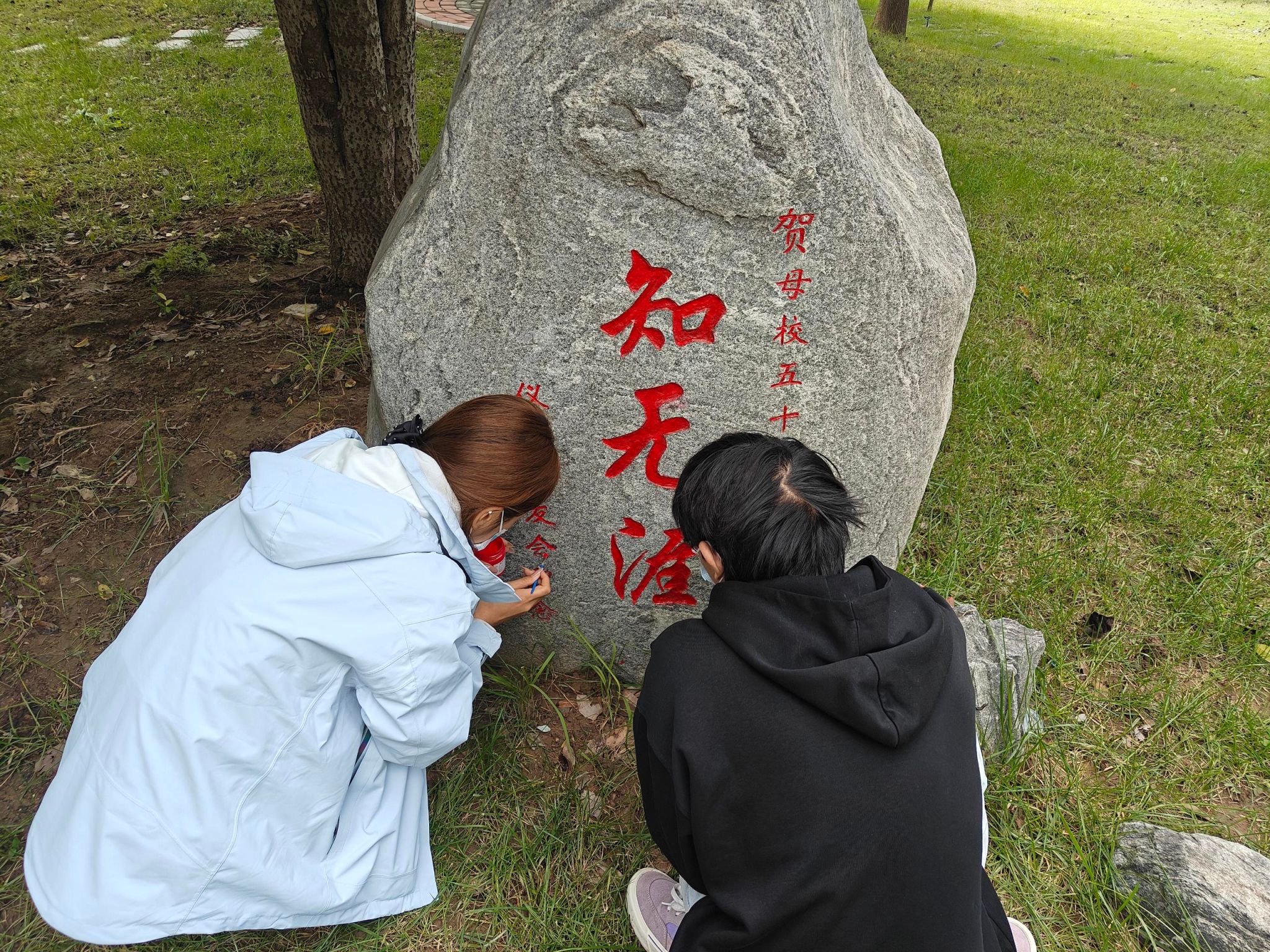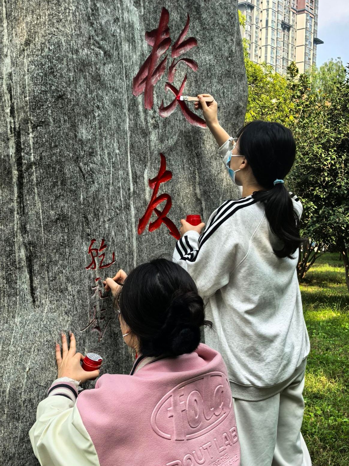 活动过程中,大家神情专注、心手合一,分工协作、配合默契,用手中鲜艳的颜料认真细致地为景观石的文字添红加彩,点划撇捺间饱含着对母校的深情和70周年校庆的美好祝愿。经过一个下午的辛勤工作,龙湖校区30余块景观石全部焕然一新。(通讯员 王峥)