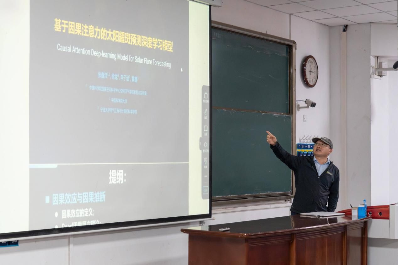 中国科学院 “百人计划”学者、宁波大学徐龙教授,以"基于因果注意力的深度学习太阳耀斑预测模型"为主题作报告。