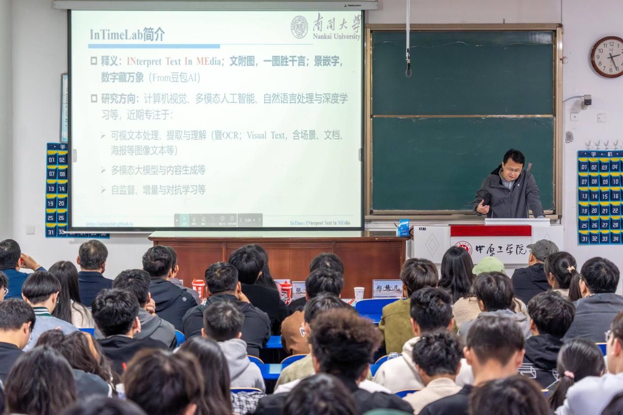 在交流互动环节,师生围绕人工智能前沿技术、应用挑战及未来发展方向与专家深入探讨。