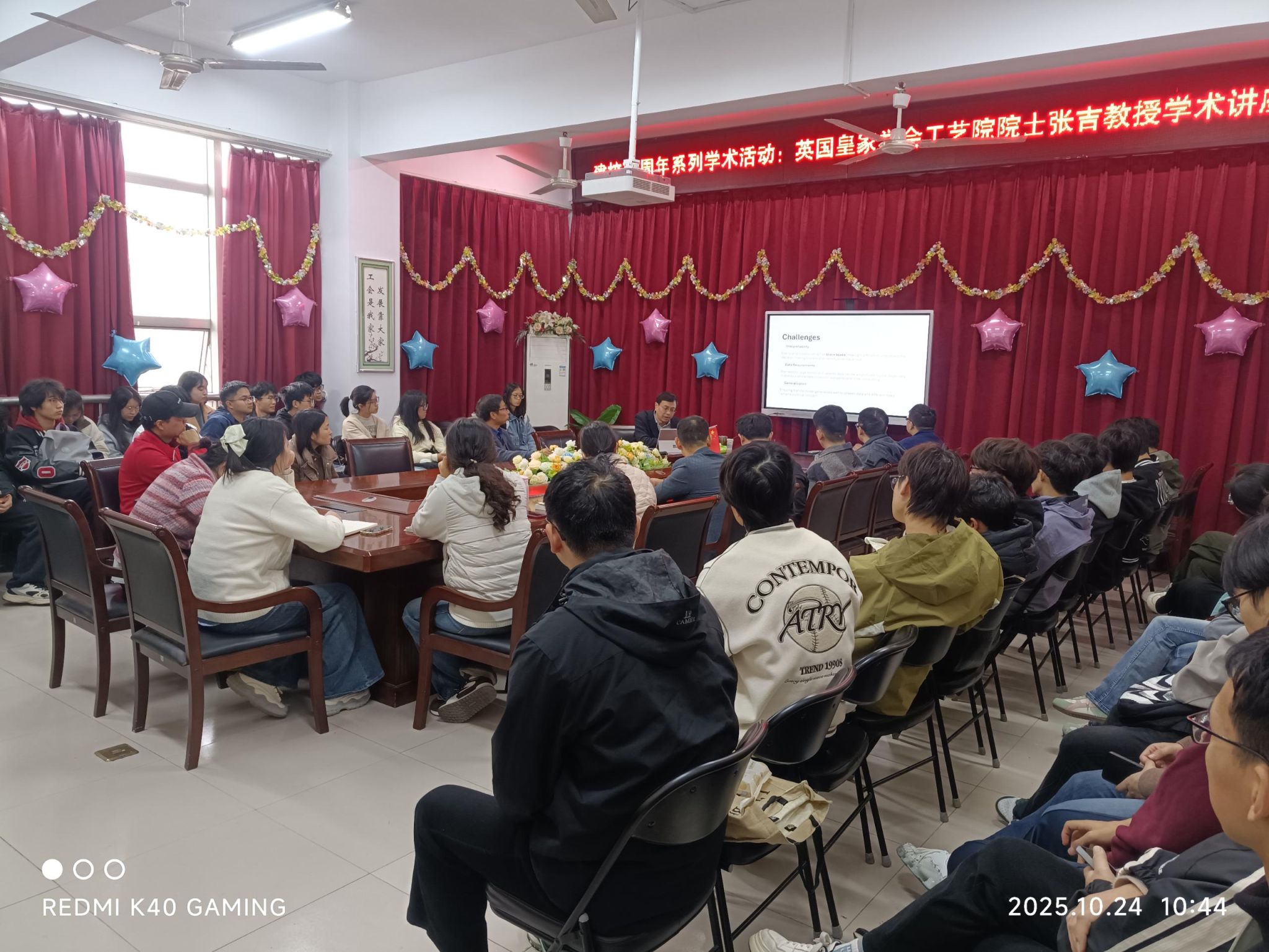 10月24日,应我校科技处、数学与信息科学学院联合邀请,英国皇家学会工艺院院士张吉教授在龙湖校区为我校师生作“大语言模型实践与应用”的学术讲座。学校相关专业师生到场聆听,数学与信息科学学院副院长张建林主持讲座。