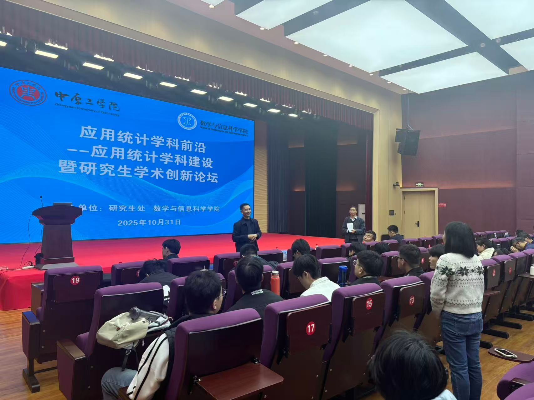 金秋十月,硕果盈枝,学术赋能正当时。10月31日,由我校研究生处和数学与信息科学学院联合举办的“应用统计学科前沿——应用统计学科建设暨研究生学术创新论坛”在龙湖校区圆满落幕。本次论坛设置“应用统计学科建设论坛”“数学与信息科学学院研究生学术创新论坛”两大模块,聚焦学科建设与学术创新要点,为师生搭建起高水平交流的平台。