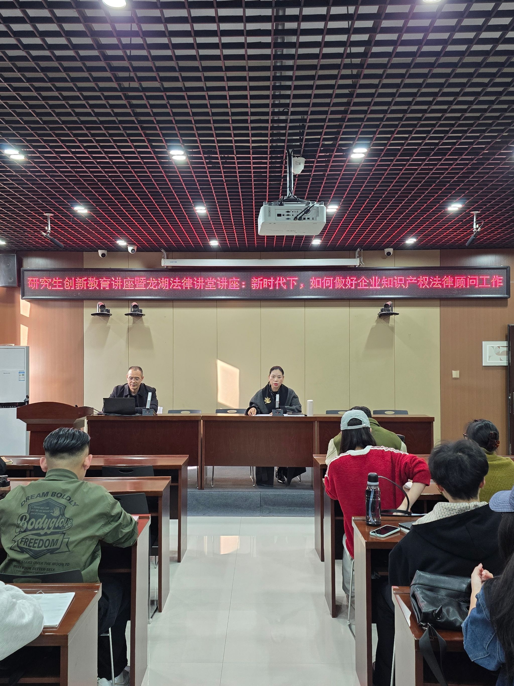 近日,受法学院(知识产权学院)邀请,中国移动通信集团河南有限公司法律顾问、河南科技通律师事务所主任张建东在龙湖校区为师生作《新时代下,如何做好企业知识产权法律顾问工作》专题讲座。此次讲座系法学院(知识产权学院)研究生创新教育暨龙湖法律讲堂的重要活动,学院全体研究生参与并进行学术交流。讲座由学院副院长张金艳教授主持。