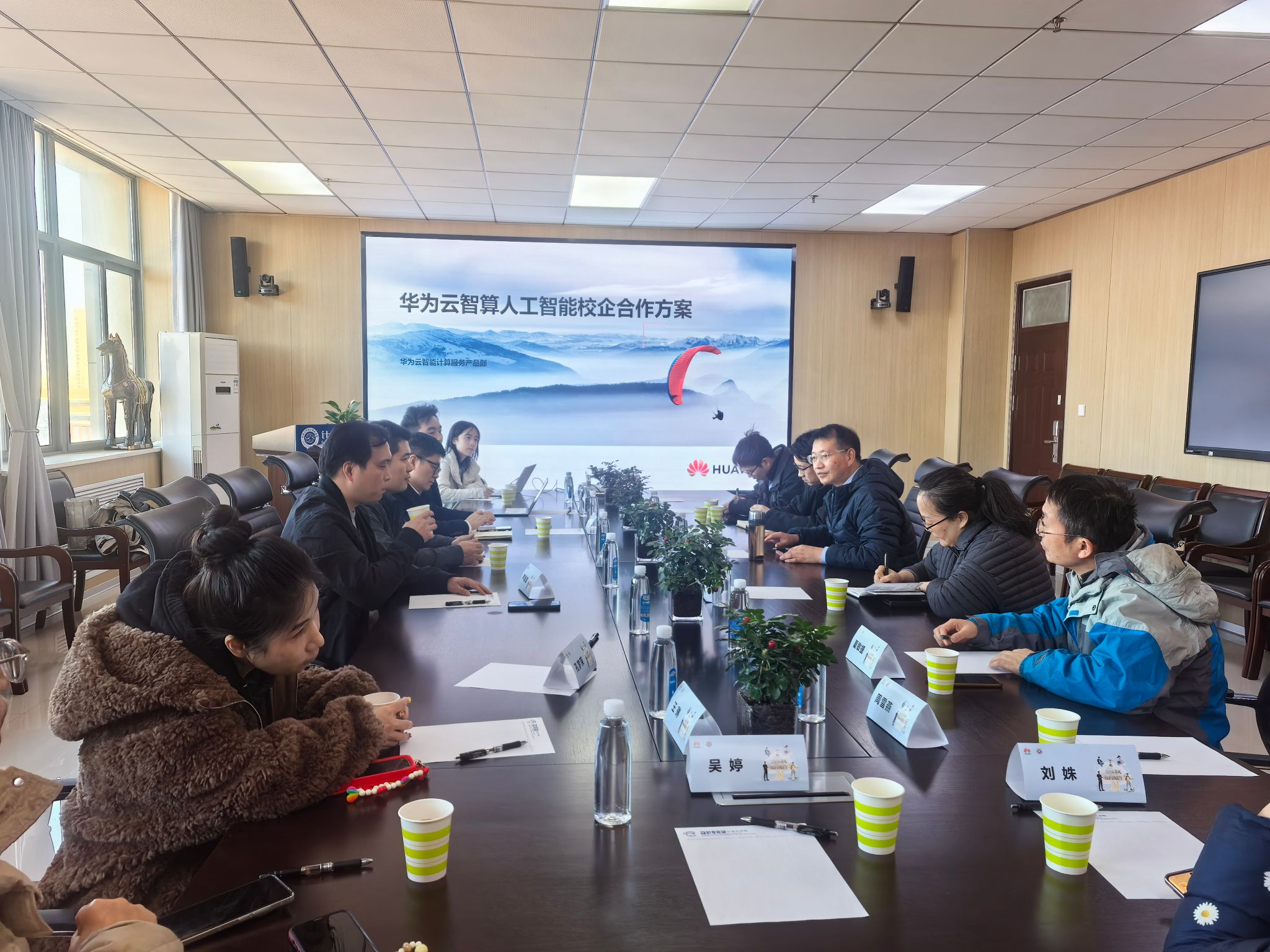 在教师闭门研讨会上,我校计算机学院执行院长张书钦,郑州升达经贸管理学院信息工程学院院长周湘贞、创新创业学院院长王铮,河南工程学院计算机学院副院长于海鹏,河南理工大学芦碧波教授,河南省人工智能学会人工智能通识教育专委会常务副主任张沛杰等与华为昇腾生态专家围绕昇腾AI技术与高校人才培养的深度融合展开交流。华为技术专家重点介绍了“AI百校计划”、教育部协同育人项目以及“华为开发者布道师计划”等多项校企合作渠道,并分享了“揭榜挂帅”挑战杯、昇腾AI算法挑战赛等赛事情况。校企双方围绕人才培养、师资共享、课题研究等产教融合议题达成多项共识,为我校人工智能教育教学注入新动能。