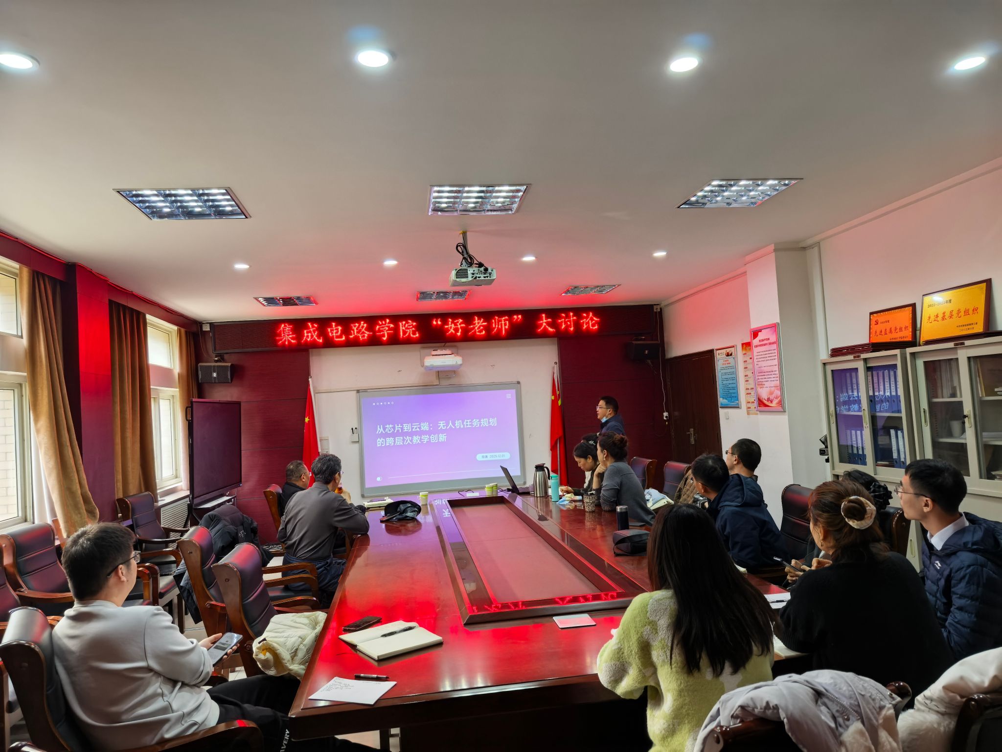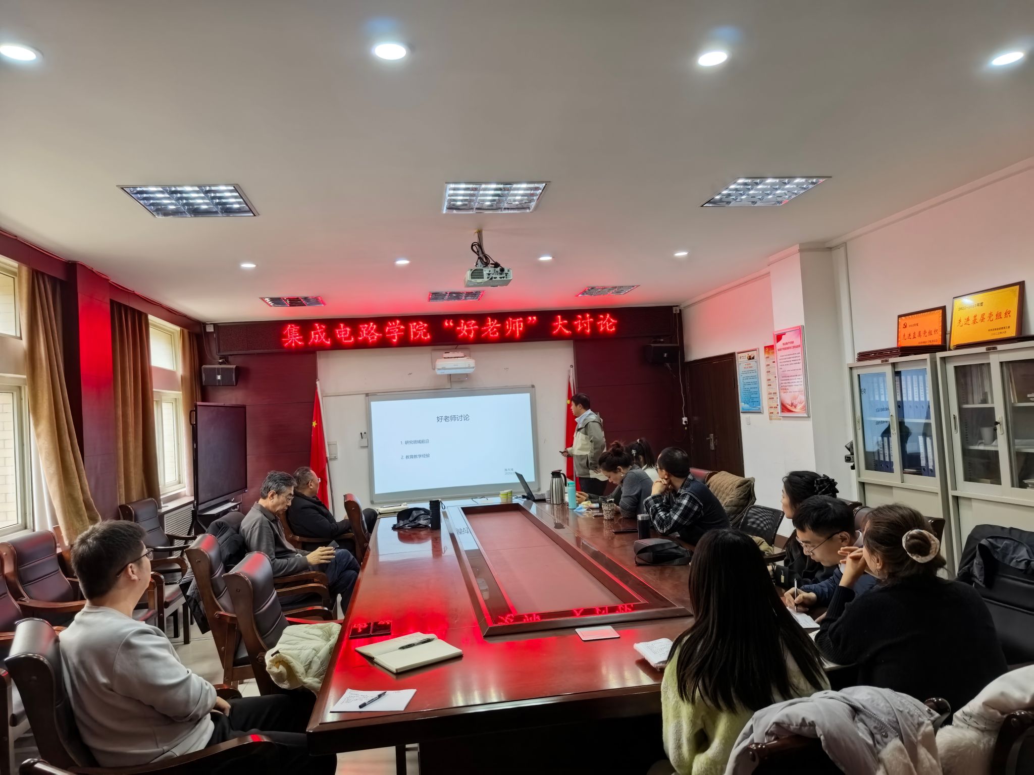 为深入贯彻新时代党的教育方针,全面落实立德树人根本任务,持续加强师德师风建设,进一步凝聚发展共识、明确前进方向,12月2日,集成电路学院于龙湖校区组织召开“好老师”大讨论专题研讨会。集成电路学院领导班子及全体教职工参会。会议由我校学术副校长、集成电路学院院长马建国主持。