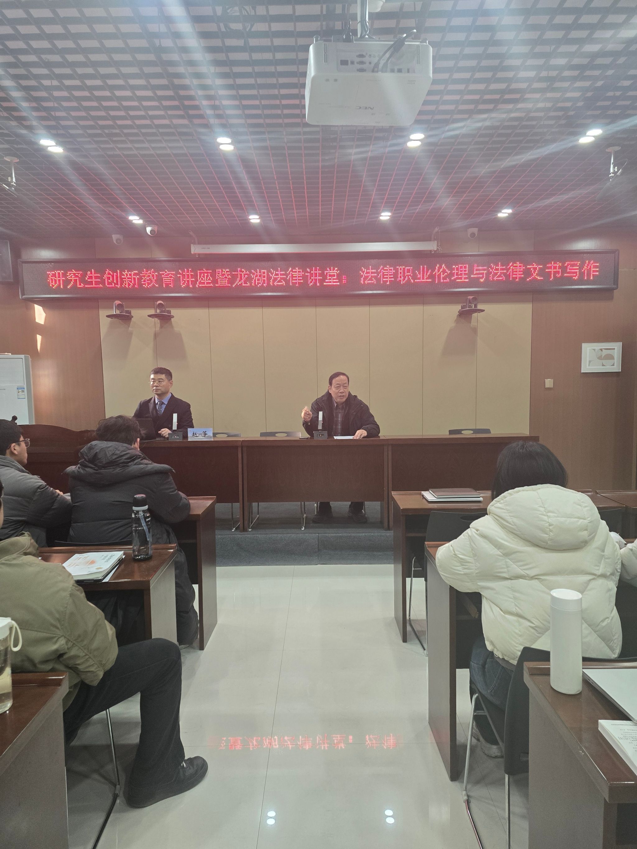 近日,受法学院(知识产权学院)邀请,河南省高级人民法院民事审判第三庭副庭长、高级法官赵筝于龙湖校区为师生作《法律职业伦理与法律文书写作》专题讲座。此次讲座系法学院(知识产权学院)研究生创新教育暨龙湖法律讲堂重要活动,学院全体研究生参与并进行学术交流。讲座由学院院长王肃教授主持。
