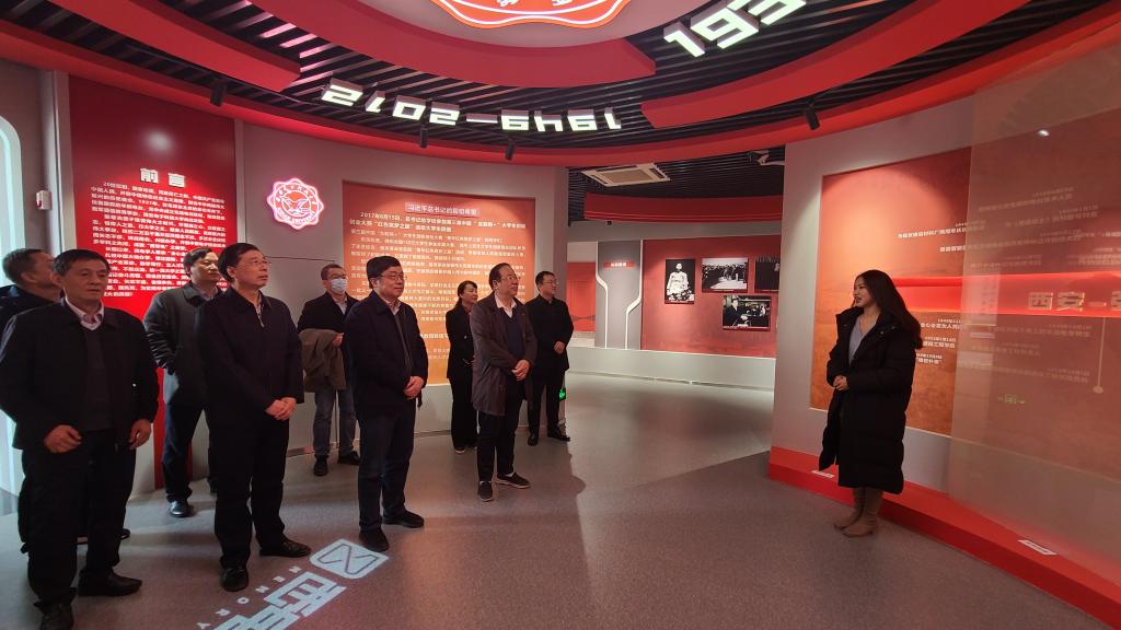 刘国际一行在谢军占的陪同下参观了西电AI教育中心、校史馆、博物馆,登上观光塔浏览了西电南校区的整体布局与功能分区。
