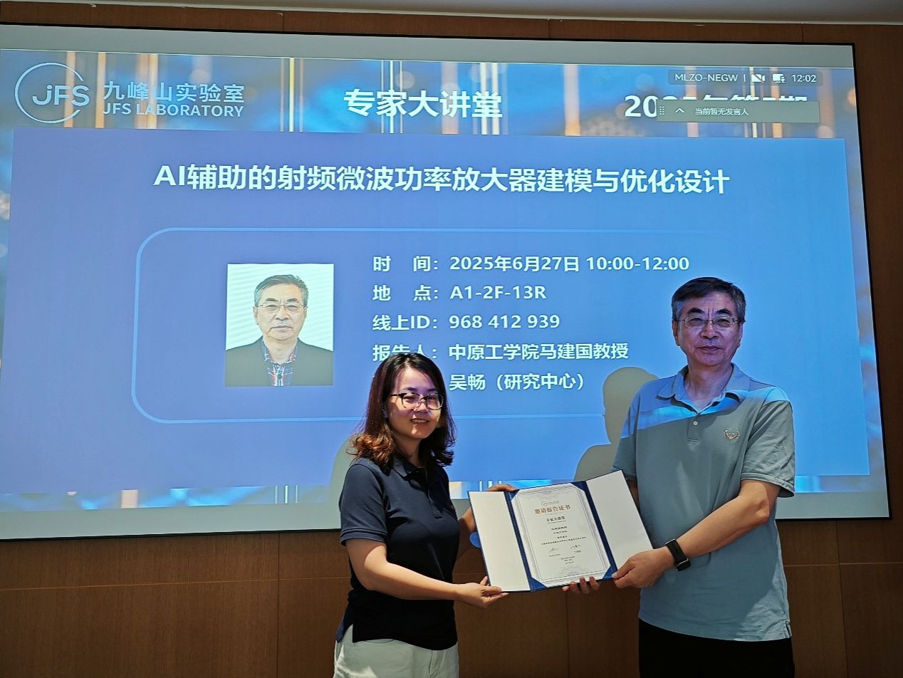 6月27日,我校学术副校长马建国教授应湖北九峰山实验室研究中心无线领域首席专家吴畅博士邀请做客“九峰山专家大讲堂”并做主旨演讲,共同探讨产学研合作的新模式与新路径,为推动科技成果转化、促进学术与产业深度融合贡献智慧与力量。