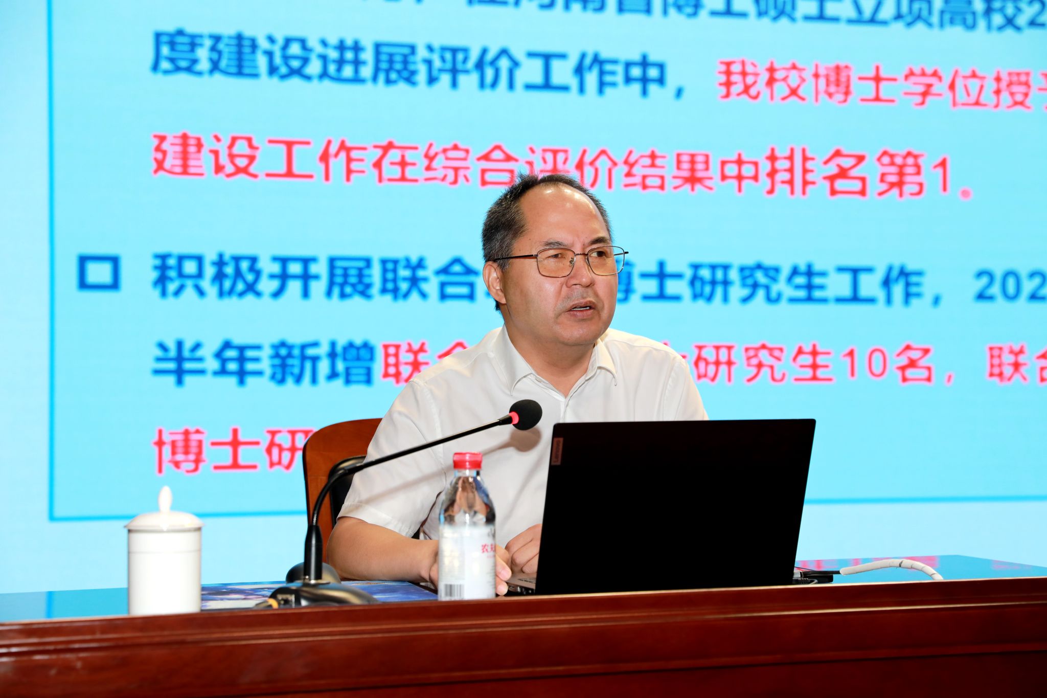 会上,党委副书记、校长夏元清作题为“坚定信心迎大考 全力以搏创辉煌 全力以赴打赢更名大学攻坚战”的工作报告,从“学习教育扎实推进、大学筹建有力有效、航空港校区建设全面铺开、校庆筹备进展顺利、博士授权对标建设、人才培养质效双升、招生工作圆满完成、人才引进聚沙成塔、科研创新能力不断提升、夏季学期校园井然有序”10个方面对春季学期和夏季学期工作进行回顾总结,并结合国务院2025年8月26日印发的《关于深入实施“人工智能+”行动的意见》要求,聚焦AI应用驱动的科技革命和产业变革以及河南省经济社会发展的需求,深入分析了学校发展面临的形势任务。他指出,全校上下要深入贯彻落实习近平总书记在河南考察时的重要讲话精神,聚焦省委“1+2+4+N”目标任务体系,深入实施“1+3+3”工程,着重做好“10项行动”工作任务。10项行动分别是:铸魂固本强基行动、迎评攻坚决胜行动、校区建设筑基行动、博士点申报冲刺行动、70周年校庆聚力行动、人才强校聚智行动、科研攀登登峰行动、学院内涵提质行动、综合改革破冰行动、安全护航筑稳行动。他强调,秋季学期任务艰巨、时间紧迫,全校要以“功成不必在我”的境界和“功成必定有我”的担当,以“作示范、勇争先”的昂扬斗志和拼搏劲头,不断创新思路举措、拓展载体抓手、落实十大行动,坚决完成目标任务,为建设国内先进、特色鲜明、具有一流学科的新型研究型工科大学打下坚实基础,为奋力谱写中原大地推进中国式现代化新篇章作出贡献。