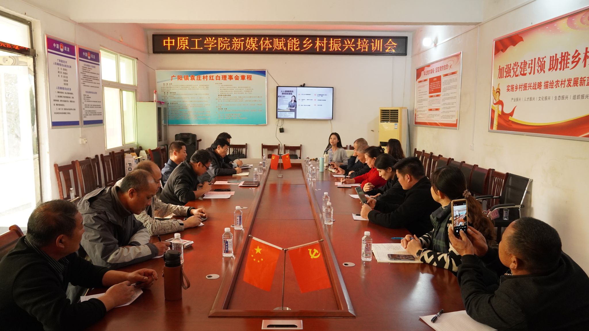 数字赋能产业,能力提升助推增收。针对乡村干部新媒体运营能力提升的迫切需求,网络与新媒体系教师刘思瑶、丁颖聚焦《驻村干部人设打造与直播实操》《如何利用新媒体讲好乡村故事》等内容,为广阳镇驻村第一书记、村干部开展专题培训。课程涵盖短视频制作、社交媒体运营等技能,助力基层干部挖掘本土资源,拓宽宣传与增收路径。